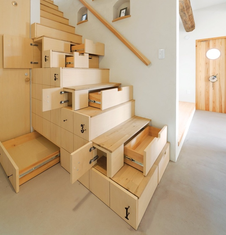 ▼1.樓梯也是儲物櫃,能夠放很多東西。