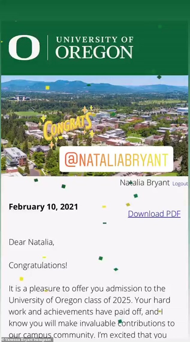 已故籃球巨星柯比布萊恩(Kobe Bryant)的大女兒,18歲的納塔莉亞(Natalia),被美國名校俄勒岡大學(University of Oregon)錄取,馬上就要成為一名大學新鮮人了。她的媽媽凡妮莎(Vanessa)在IG上分享了這個好消息,表示為女兒感到驕傲!