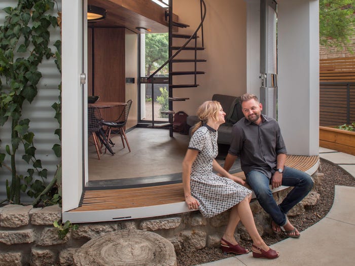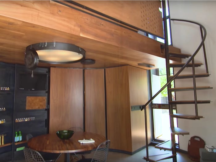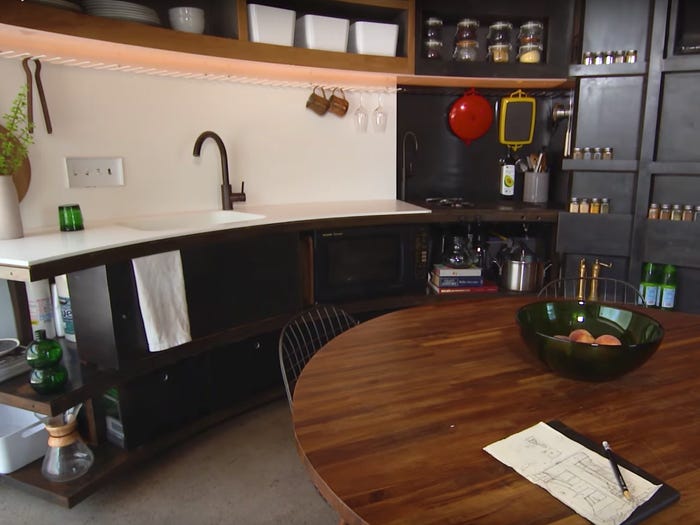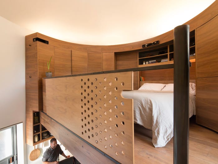 ▼Shauna得知丈夫正在改造舊糧倉,也過去幫忙。他們將糧倉變成了一棟2層的小公寓,裡面所有的傢俱都是特別設計過的,符合圓弧形的空間結構。
