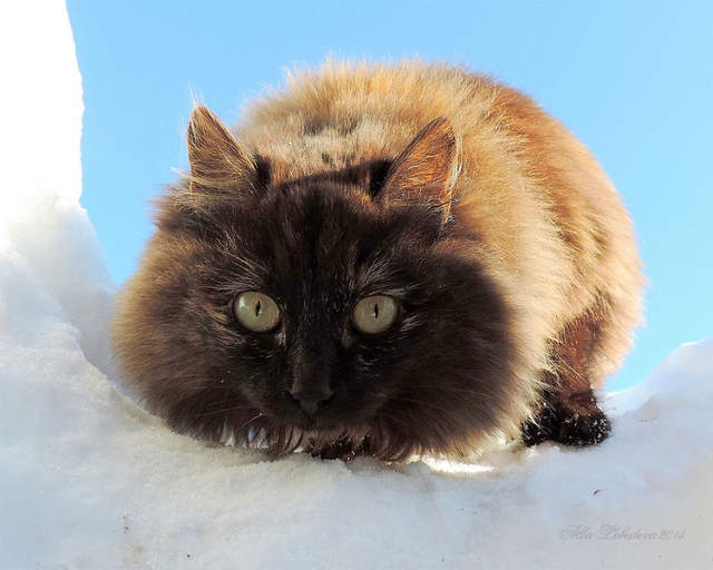 ▼雪地中的西伯利亞貓: