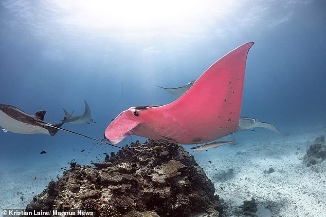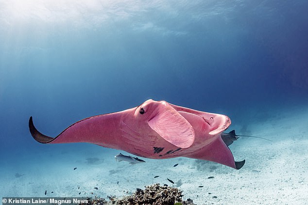 魔鬼魚是世界上最大的魟魚,Inspector Clouseau足足有3公尺長、2噸重,平時在艾略特夫人島附近生活。牠是目前唯一發現的粉紅色魟魚,Laine能夠拍到這一系列照片非常幸運呀。