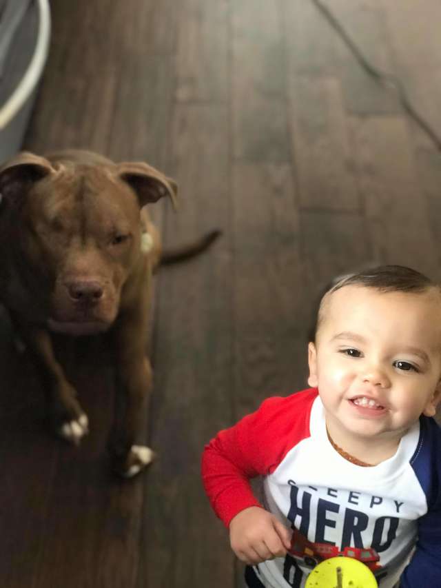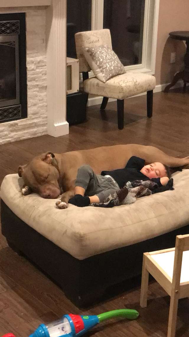 ▼一年之後,Bryan和妻子生下了一個小男孩,取名為Dawson。Riddick和家裡的另一隻比特犬都非常喜歡這個小弟弟。Bryan說:「我們稱牠們是『爪子親衛隊』,只要Dawson一哭鬧,牠們就會馬上跑過去看弟弟怎麼了。Dawson睡醒後,這兩隻狗狗也會第一時間跑過來。」