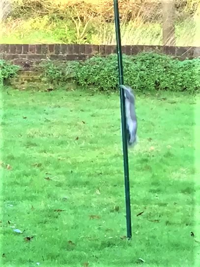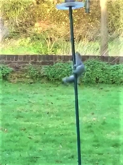 Mum was fed up of the squirrels stealing all the bird food so she greased the feeder!https://t.co/32PtiGWyk4
