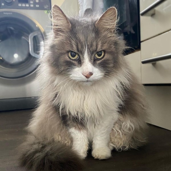 ▼這隻貓咪非常帥氣,灰白色的長毛很蓬鬆,一雙大大的眼睛炯炯有神。看看牠堅毅的眼神,就明白牠為什麼那麼固執,非要走原足跡回家啦-這是身為貓咪該有的堅持!
