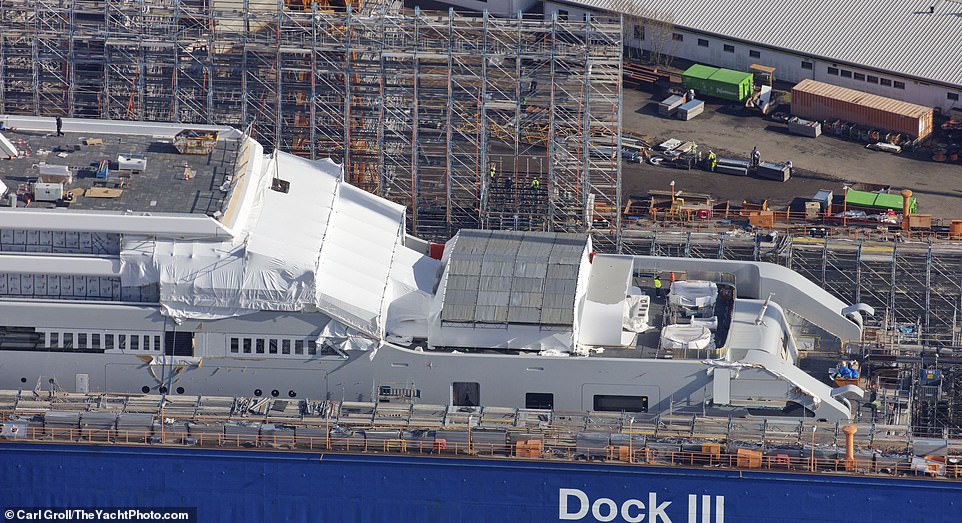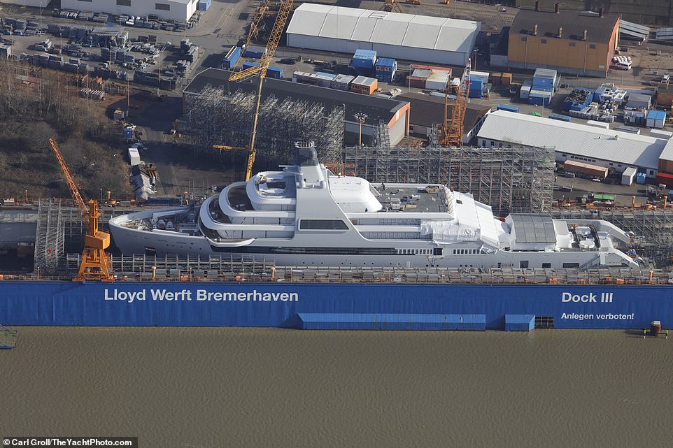 ▼遊艇上有很多豪華設施,包括泳池、按摩池和水療浴缸,還有直升機坪。現在它還在德國不萊梅港的一間船塢中建造。