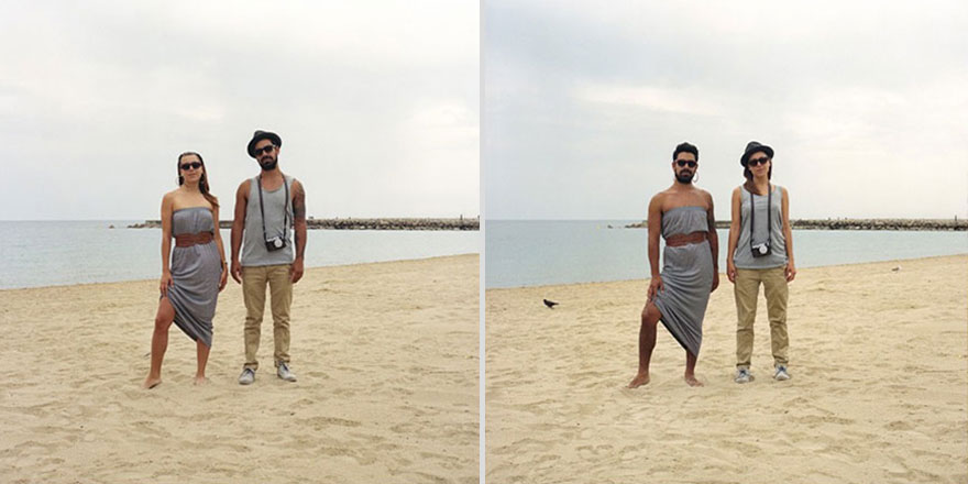 男友換上小禮服! 攝影師揪情侶們「換穿對方衣服」 全球戀人「靈魂互換」比情侶裝還閃♡