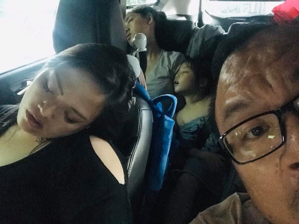 ▼原來在回程時,全家人除了駕駛之外都睡成一片,讓身為駕駛的爸爸超無奈的。