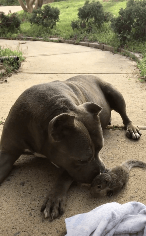 ▼Everly和松鼠整天都待在一起。Everly很關心松鼠的健康和安全,還會主動聞牠、舔牠。Groves經常拍攝牠們相處的有愛日常,並將照片po到Instagram上。