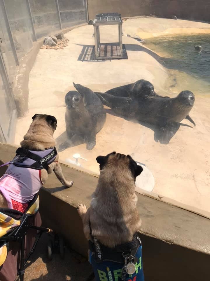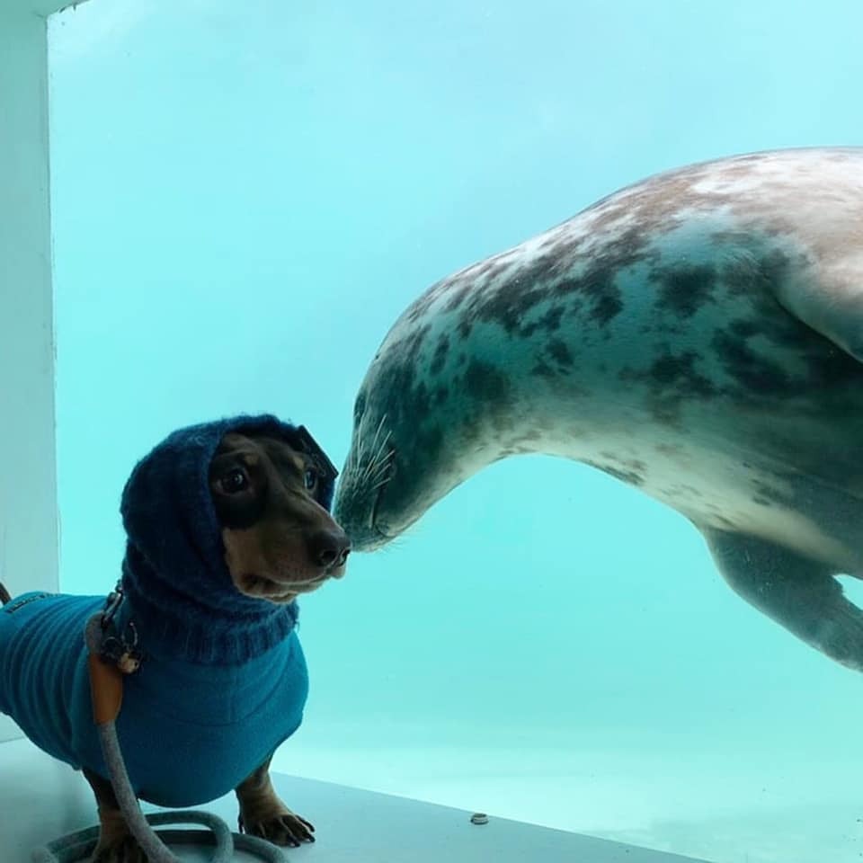 認錯了啦!呆萌海豹見「戴帽子臘腸犬」以為是同類 隔玻璃搭訕:你怎麼不用在水裡?