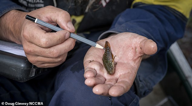 ▼維多利亞州環境、土地、水資源和規劃部的Adrian Martins說:「我們的團隊一直在為保護瀕臨滅絕的物種而努力,現在竟看到了滅絕物種的回歸,這非常特別!當我們在湖中找到那麼多南方紫斑鱘魚時,我們都覺得難以置信!」