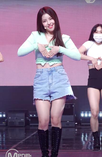 ▼在11日的音樂節目《MCOUNTDOWN》中,Brave Girls的四位成員身穿緊身上衣和牛仔短褲,展現了春日的清新感。隨後官方將四位成員的直拍影片上傳後,侑廷憑藉甜美的笑眼和性感的身材很快成為網友熱議的焦點。