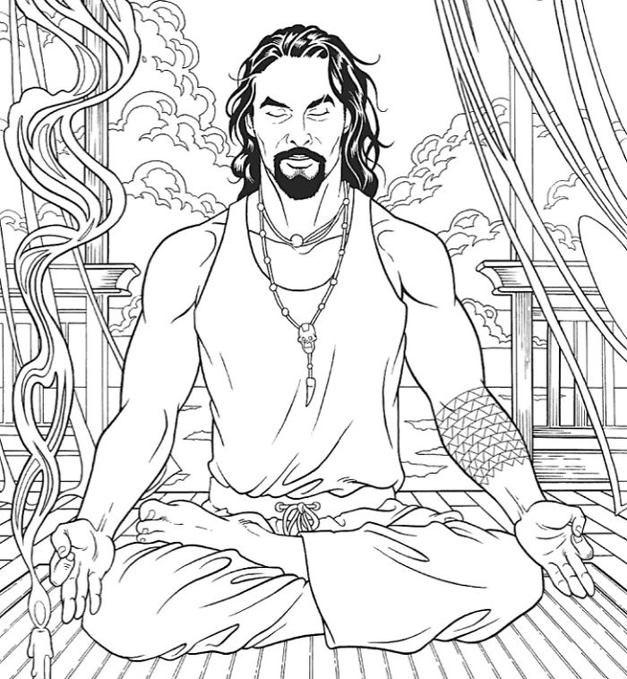 ▼傑森摩莫亞外表粗獷,他有一頭迷人長髮和鬍子,還有發達的肌肉,燦爛的笑容很有活力。這本著色書完美還原了傑森摩莫亞的外貌特點,就連畫作中的場景都是海邊,把人帶到熱帶海濱的放鬆氣氛中去。