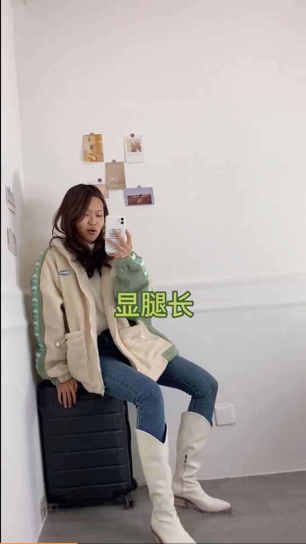 ▼如果想讓腿顯得長一點,就稍微往後靠著牆、手插口袋,腿伸展開,一下子就有了大長腿!