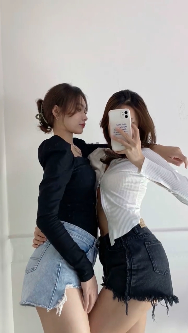 ▼和閨蜜拍照,哪怕抱在一起拍攝,也要偷偷凹背翹起屁股,視覺上讓臀線變高,看起來比例也會更好。