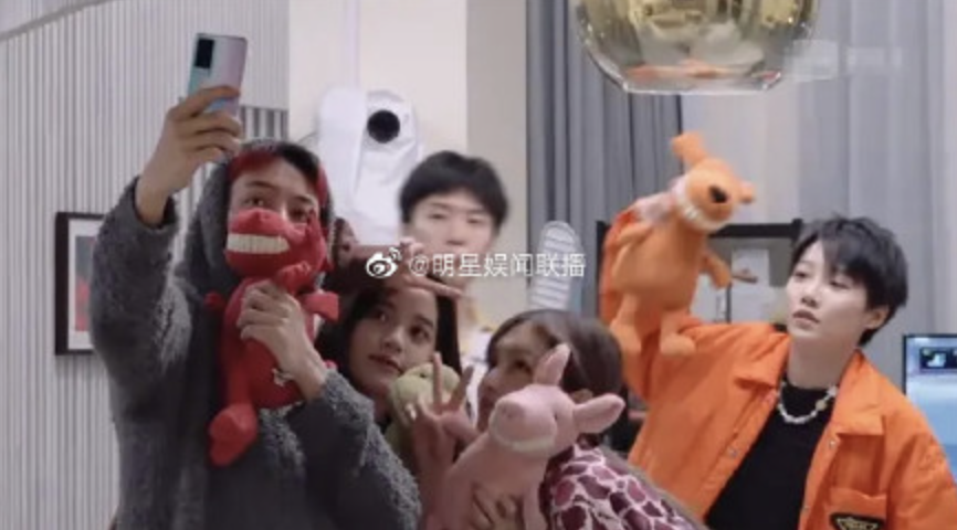 ▼之前周揚青參加大陸綜藝節目《潮流合夥人》,在其中一集中,歐陽娜娜送給大家卡通玩偶,周揚青選擇了一隻粉色小豬。歐陽娜娜說「我就知道你會選這隻豬」,周揚青聽到後露出害羞的笑容。