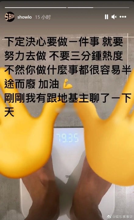 ▼後來周揚青在微博小號發文說:「希望今天做出的決定,在未來永不後悔。」同一天羅志祥也在IG發文表示:「下定決定要做一件事,就要努力去做。」雖然羅志祥的圖片配上體重計,但兩人發文的時間點和內容都引發揣測,當時就有網友猜測兩人復合了。