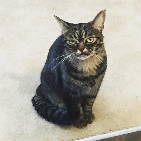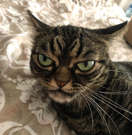 有些人天生臭臉,哪怕沒有發脾氣,也會被誤會心情不佳。不僅人類是這樣,就連貓咪也會因為長得太兇被誤解。國外有一隻叫Kitzia的4歲小貓,牠外表兇兇的,其實超愛撒嬌超溫柔,獨特的反差萌很吸引人~