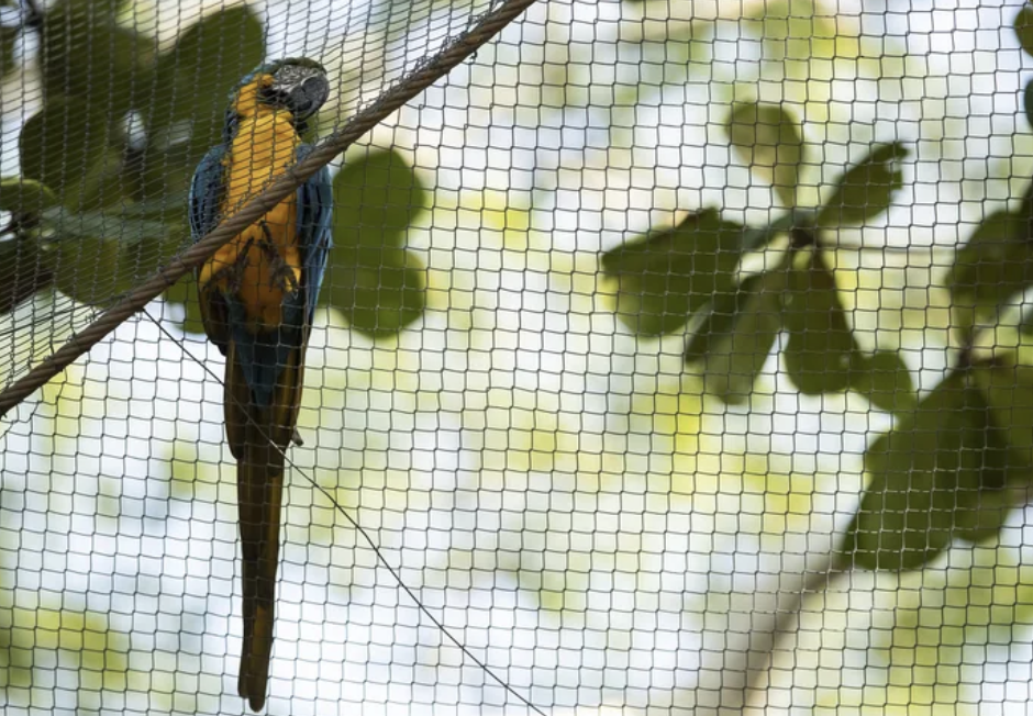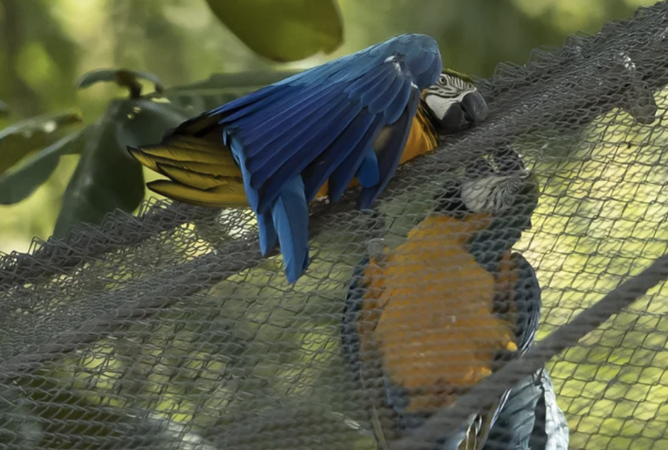 ▼Juliet被認為是巴西城市中僅存的一隻野生金剛鸚鵡,牠全身的藍色、黃色羽毛非常鮮豔,看起來很美。過去20年來,牠每天早上都會出現在動物園的鐵絲網上,跟園中的其他鸚鵡一起休息。有時候牠還會飛越圍欄,跟園中的鸚鵡一起互相梳理羽毛。