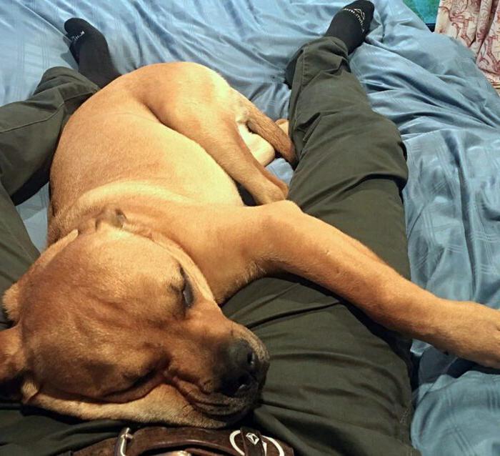 ▼隨著時間的推移,Stanley越來越信任Sam,也越來越黏人。Sam走到哪裡,牠就跟到哪裡。Sam坐在沙發上看電視,牠會乖巧陪在旁邊;Sam晚上睡覺,牠也要跟著一起進入夢鄉。Stanley最喜歡跟著Sam一起外出兜風,Sam開車的時候,牠會將腳腳放在Sam的手上,希望把拔不要忽略自己。