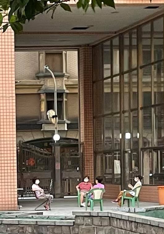 ▼原po表示:「想聊天又想要有社交距離的阿姨們。」從照片中可以看到,社區中的阿姨們非常配合防疫,她們各自搬來小椅子,圍坐在一起聊天,但都戴著口罩,彼此之間還空了2、3步的距離。原po後來又說:「阿姨們真的很可愛,這邊我必須幫阿姨們說話,他們平常就喜歡聚在一起聊聊天,完全不會很大聲也不吵噢,是社區裡優質親切的阿姨們。」