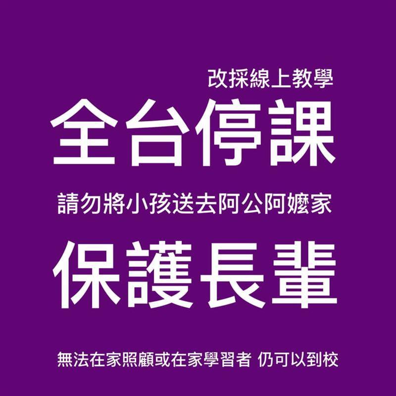 教育部宣布,全台各級學校停課,大專校院及高級中等以下學校改採線上教學,學生居家遠端學習不到校,線上教學為正式課程,暑假期間不另行補課為原則。課程、教學與評量方式,授權學校以彈性多元方式處理,並採從寬認定為原則。