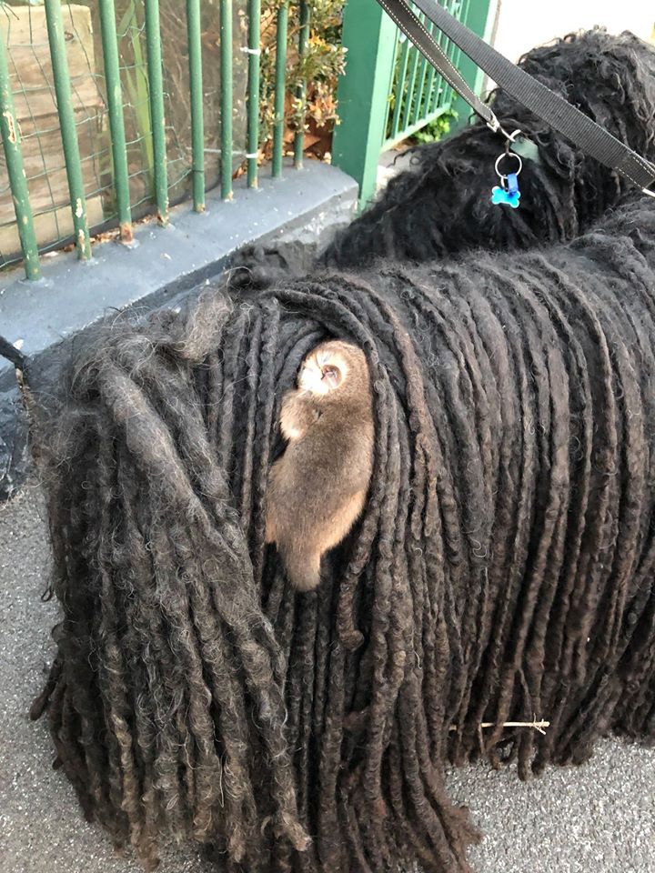 借搭便車!拖把汪外出散步 身上竟出現「嬌小乘客」:這樣比較輕鬆啦~