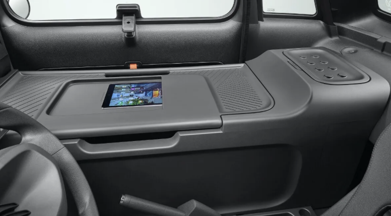 ▼Citroen Ami Cargo的車內空間非常緊湊,但麻雀雖小五臟俱全。極簡的內裝使得它擁有更大的載貨空間。加裝了高低可調式底板和兩用載貨桌。只要在駕駛座就能輕鬆調整,駕駛非常方便,調整起來更高效。