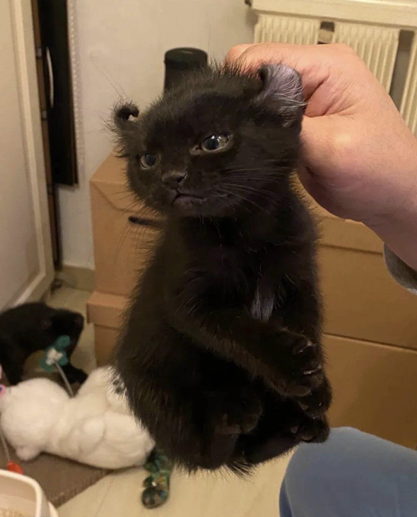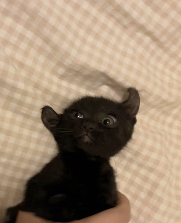 小黑貓長出「奇特卷卷耳朵」 多變表情網友好奇:是喵魔王嗎?
