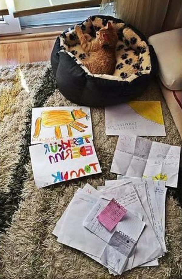 ▼老師得知這一消息後非常擔心,決定自己收編Tombi。學生們也很想念這隻小貓咪,經常給牠寫信。Tombi的故事在網路上流傳開來後,很多網友認為Tombi可以繼續留在學校。那名學生的家長最後也妥協,小小助教又能去上班了!