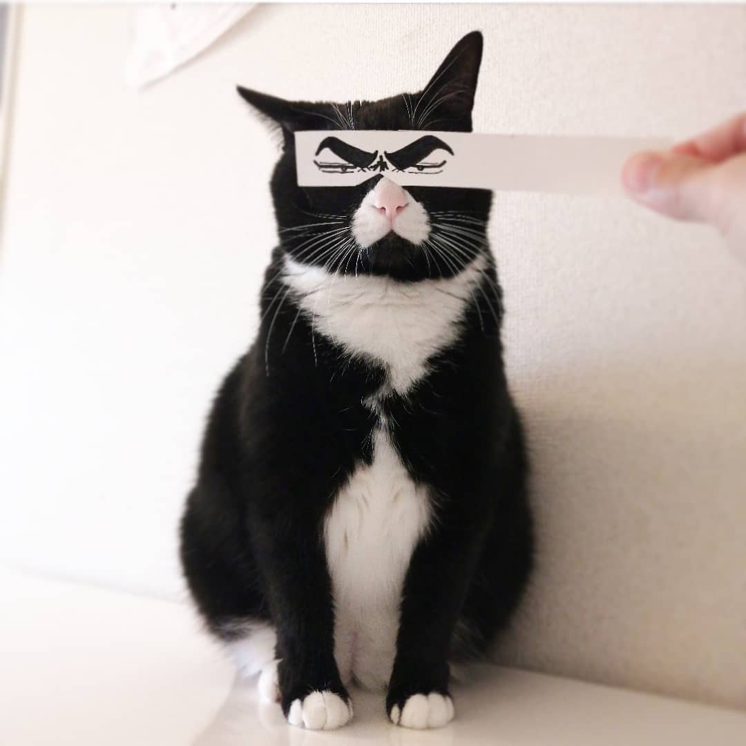 ▼有一天飼主突發奇想,在便條紙上畫了各式各樣的眼睛,搭在Sally的臉上看看會有什麼效果,沒想到竟超好笑。飼主將照片po到網路上後,網友們直呼有才:「也想給我家的貓咪畫一畫!」