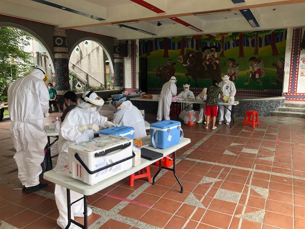 ▼宜蘭縣議員松王淑珍在臉書上分享說,宜蘭縣衛生局調派4組醫護人員在碧侯國小設置篩檢站,進行全村快篩和PCR篩檢,並請陽大醫院隨時待命,準備接收確診個案。篩檢站中的醫護人員全副武裝,穿著密不透風的防護衣、戴著口罩,而等待採檢的民眾坐在塑膠椅上等待。