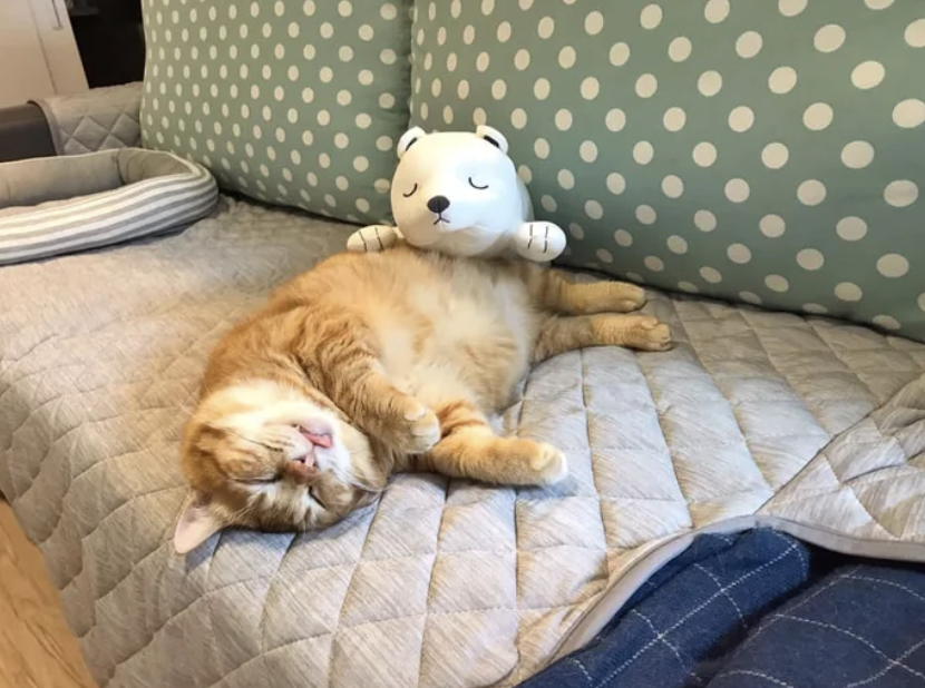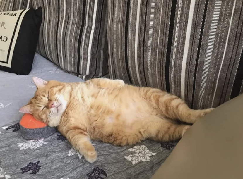 彷彿看見吃飽的自己! 好吃懶做橘貓「爽睡整天」攤肚皮:偶只是遺落人間的一條吐司~