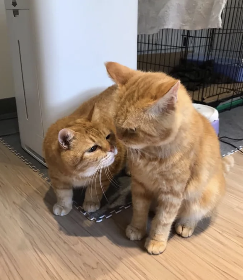 ▼肥祥的同伴是一隻叫「帥哥」的橘貓。帥哥的前主人在2019年時離開人世,這隻患有FIV的老貓一時之間變得無依無靠,肥祥的主人知道這件事後將牠帶回家。帥哥和肥祥很快成為了好朋友,兩隻貓貓相處得很好。
