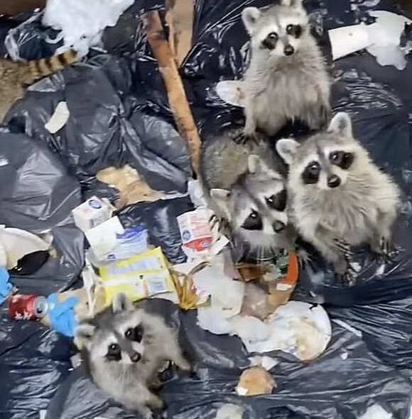 ▼那天早上Robert去送貨,經過一個垃圾桶時,聽到裡面傳來奇怪的聲音。他覺得不對勁,連忙過去查看,這才發現有一窩小浣熊被困在裡面。看來應該是浣熊媽媽帶著孩子們過來覓食,但牠們吃飽喝足後卻跑不出去了,情況有點尷尬。