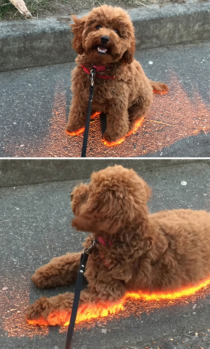 ▼狗狗坐在陽光中,夕陽將牠的毛毛變得非常酷。