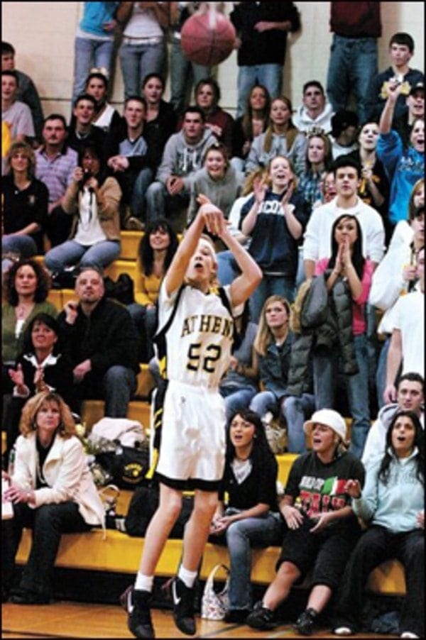 ▼傑森所在的校隊表現很好,距離比賽結束還有3分46秒時,教練讓傑森上場,希望他能得分,給自己的籃球生涯留下美好的回憶。身高只有167公分的傑森沒有讓人失望,他前兩次投籃未果,但之後沒有投丟任何一球。他連續投中6個三分球,還有1個因為踩線被改判為2分的進球,這短短幾分鐘,他得到了20分!
