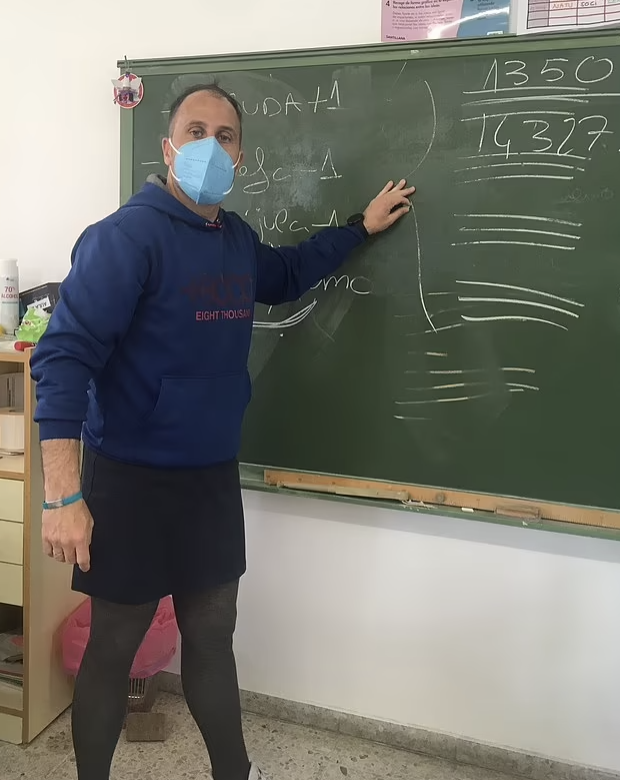 ▼一名支持Mikel的老師Jose Piñas,就在去年時穿著裙子去上課。他說:「我20年前在現在擔任教職的這所學校裡,因為性取向遭受迫害和侮辱…當時很多老師不以為然。現在我想聲援Mikel。」