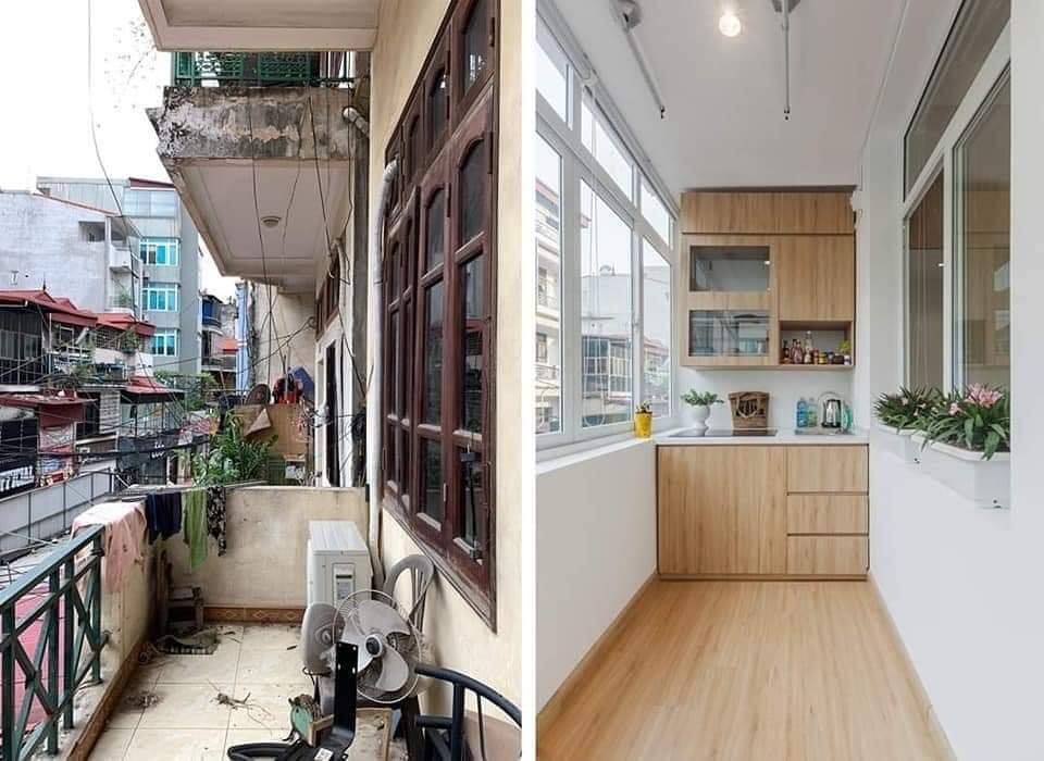 ▼原本臥室旁的陽台非常老舊,在設計師的巧思之下,陽台變成了充滿日式風格的簡約小廚房。