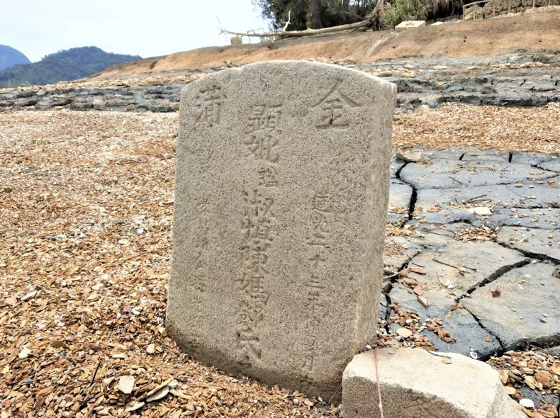 ▼今年4月下旬,因為日月潭水位持續下探,距今已有178年歷史的「道光23年仲夏」(西元1843年)墓碑浮出水面。現在墓碑再度被潭水淹沒,網友們開心表示:「希望下次不要再缺水見到墓碑了」、「入水為安了,請不要再出來見人」。