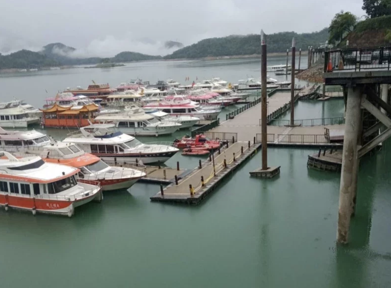 除了沉入潭底的墓碑,日月潭水位上升後,原本已擱淺的引橋浮排也重回水面。大家都想知道,碼頭什麼時候會重新開放?日管處回應說,水情雖因降雨回穩,但因正值疫情期間,相關設施仍需檢查,確認其安全性,因此重啟營運仍待研議。大家多一點耐心吧~