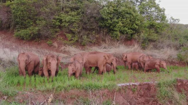 2022年06月15日最近一群野生大象成為大陸網友們討論的話題。從4月中旬開始,這15隻野生亞洲象就開始一路向北,牠們從雲南西雙版納出發,走過普洱、紅河、玉溪…走了500多公里,目前已經到昆明市境內了。有人用無人機拍下象群在草叢中睡覺的畫面,牠們躺在草叢中,大象將小象圍在中間,場面非常溫馨~