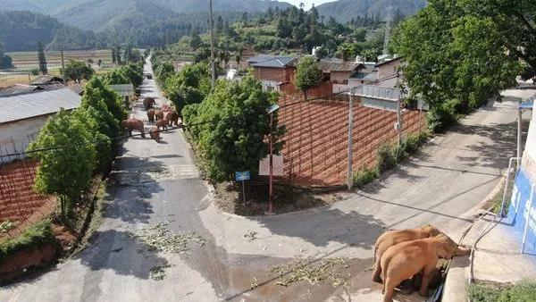 ▼象群遷徙過程中,會到農田裡漫步覓食,夜晚還會到縣城街道上活動,甚至去村民家「敲門」。