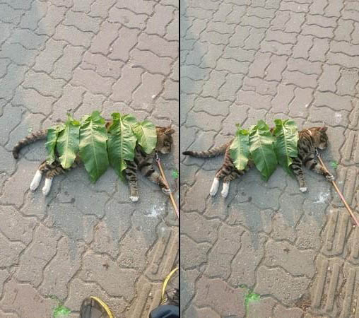 2023年06月18日小朋友天真可愛的舉動非常治癒~國外一位網友趁天氣晴朗帶貓咪外出散步,貓咪走累了,就趴在路邊小睡一會兒、曬曬太陽。牠睡得很香甜,沒想到一名小女孩看到後,竟然拿來一堆樹葉鋪到貓咪身上。主人在旁邊看得哭笑不得,這一幕太有趣啦。