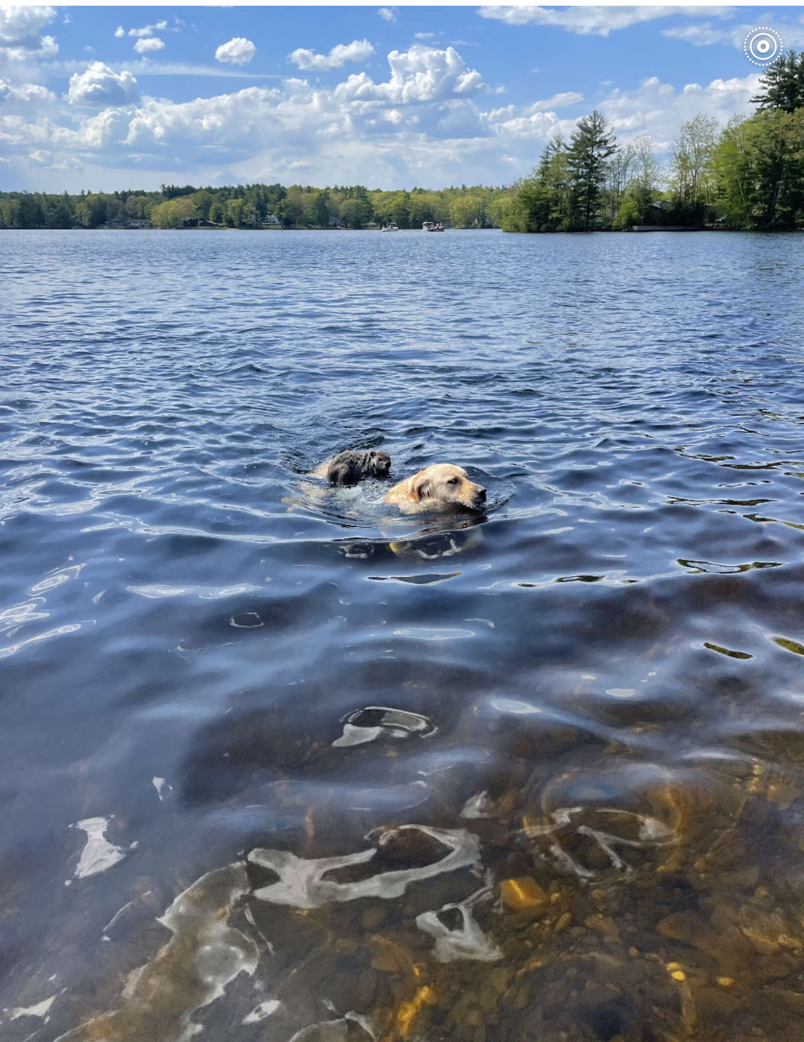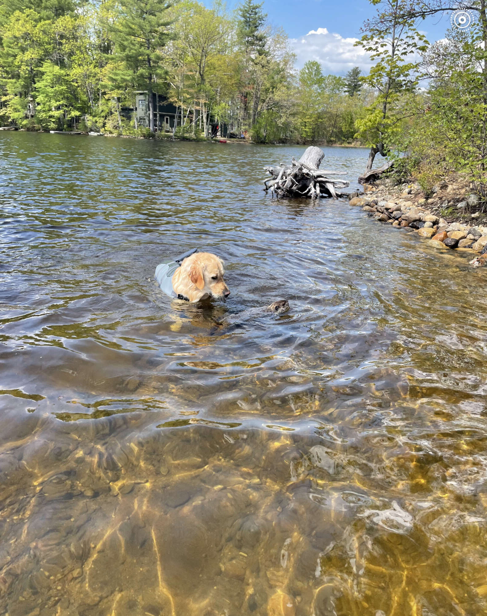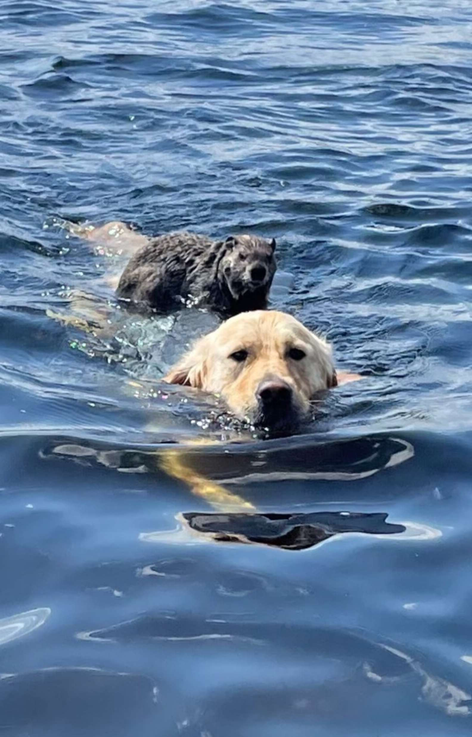 2024年02月22日金金友善又聰明,是動物界的「暖男」。不久前美國麻薩諸塞州(Massachusetts)網友Lauren Lynde和丈夫帶著2歲的黃金獵犬Wally去希克里山湖避暑。他們乘獨木舟前往湖心島時,愛玩水的Wally跳入湖中開心游泳。沒想到期間有一隻土撥鼠爬到牠的背上,讓牠將自己載上岸。