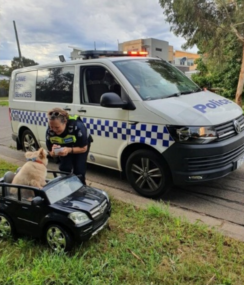 2024年02月06日這位駕駛麻煩靠邊停車,你犯規了!不久前澳洲墨爾本的2名員警在值勤巡邏時,發現有一隻狗狗獨自坐在一輛玩具小車內,並緩緩在路上行駛。這不同尋常的一幕引起他們的注意,於是兩人立刻上前盤查:「你是誰家的小朋友?怎麼獨自開車出來亂晃?」