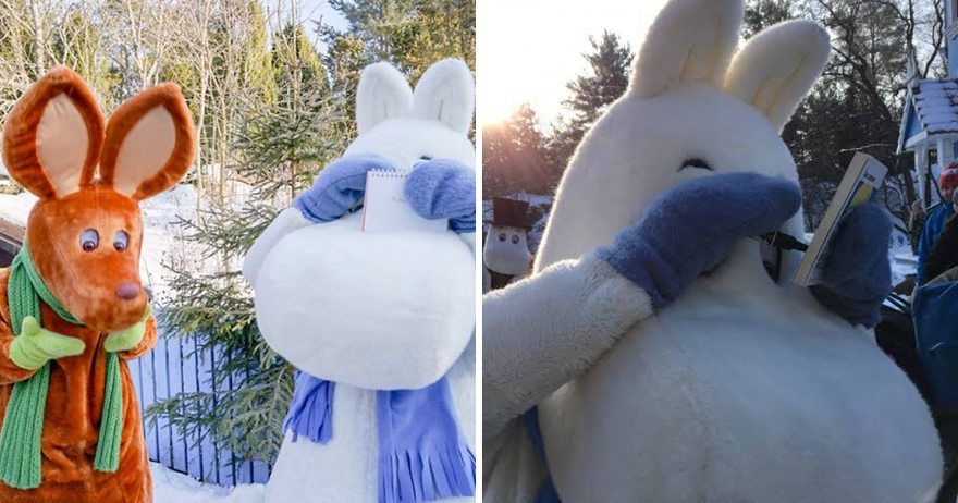 簽個名拼了!芬蘭「嚕嚕米玩偶」認真幫遊客簽名 「大近視簽法」笑翻網友:也太敬業