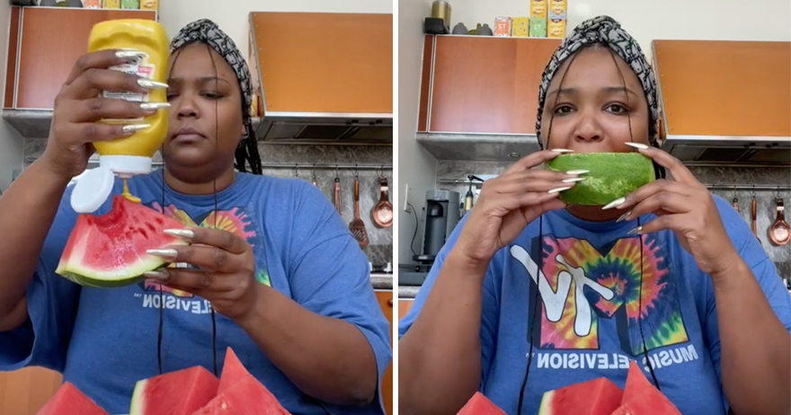 2021年06月24日西瓜是很多人夏季必吃的水果。多汁解渴又去暑氣的西瓜,吃起來很暢快。最近一種全新的西瓜吃法在網路上流傳開來。最開始是一名男網友Young Huh拍攝影片介紹,西瓜加黃芥末非常美味。這種古怪的吃法引起很多人的好奇,就連美國饒舌歌手麗珠(Lizzo)都忍不住嘗試。