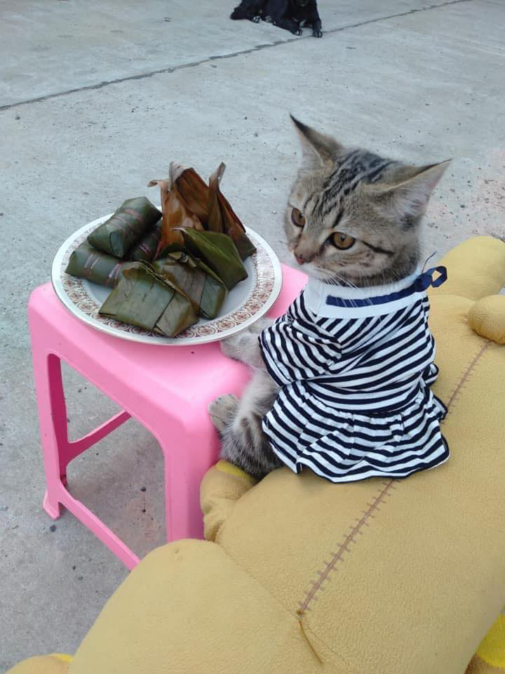 Bong Bong本身就是一隻網紅貓咪,在網路上小有名氣。主人會為牠添置不同風格的新衣,牠也十分百搭,不管穿什麼都可愛。如果牠真的外出擺攤賣菜,生意一定很好吧!