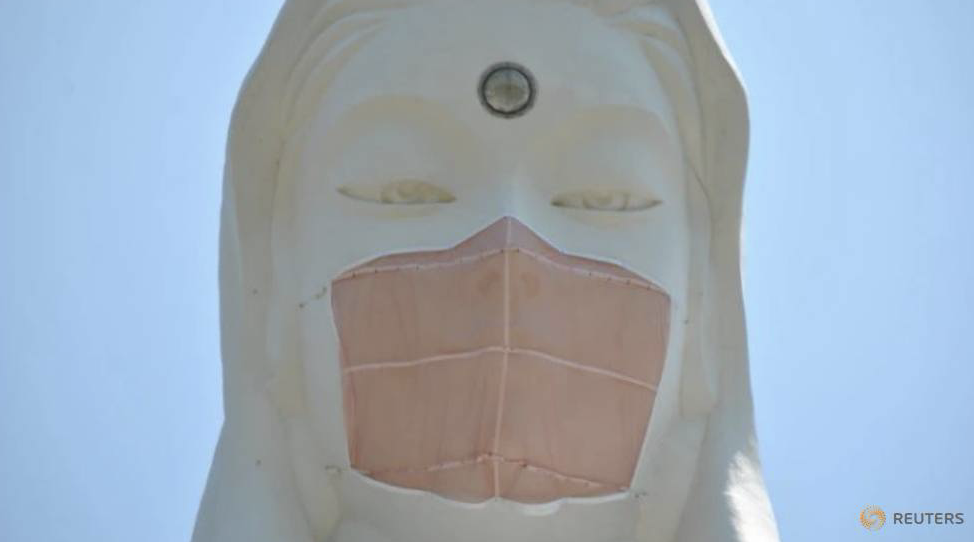 日本為57公尺巨型觀音像「戴口罩」 工作人員:祈願疫情退去