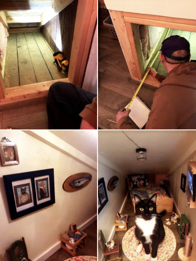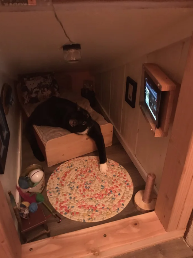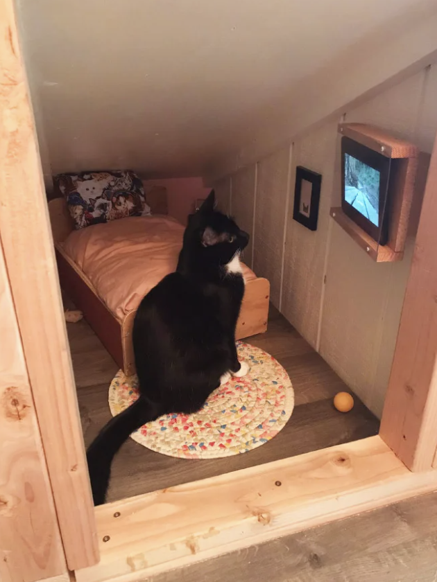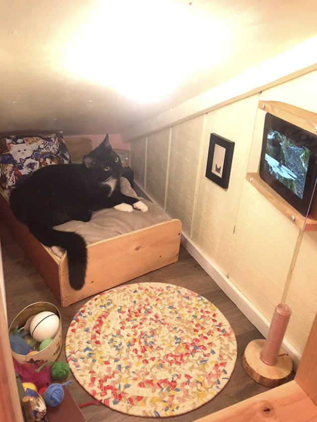 把拔好寵!改造牆後無用空間變「喵版小豪宅」 網羨慕:還有電視能追劇!